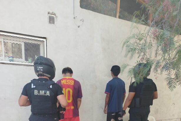 Los detenidos, de 23 y 33 años, intentaron robar una moto a punta de arma y, minutos antes, le habían sustraído a un joven un bolso con indumentaria deportiva.
