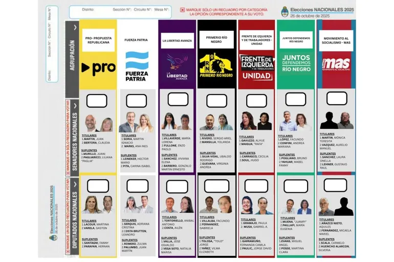 En Río Negro se utilizará el modelo de boleta “corto”, que permite hasta diez agrupaciones políticas. Este año, siete fuerzas competirán por las bancas nacionales en juego.
