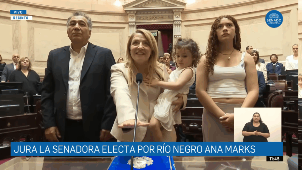 Con la exclusión temporal del pliego de Villaverde, juraron los senadores de la mayoría por Río Negro: Martín Soria y Ana Marks, ambos de Fuerza Patria.