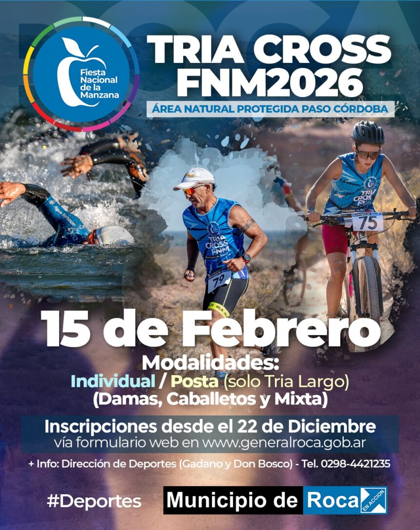 Ya se encuentran abiertas las inscripciones para una nueva edición del Tría Cross de la Manzana, uno de los eventos deportivos más convocantes de la Fiesta Nacional de la Manzana. La competencia se llevará a cabo el domingo 15 de febrero de 2026 en el Área Natural Protegida Paso Córdoba, uno de los escenarios naturales más emblemáticos de General Roca.