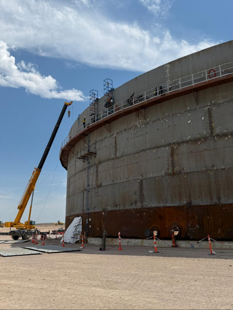 A comienzos de noviembre se alcanzó un nuevo hito técnico con la última soldadura automática del oleoducto que une Allen con Punta Colorada a lo largo de 437 kilómetros. Actualmente continúan las pruebas hidráulicas, las obras civiles y el montaje de instalaciones, mientras que la terminal de exportación concentra el mayor volumen de tareas, con la ejecución de estructuras principales, impermeabilización, protección catódica, montaje de domos, caminos internos, drenajes y servicios.